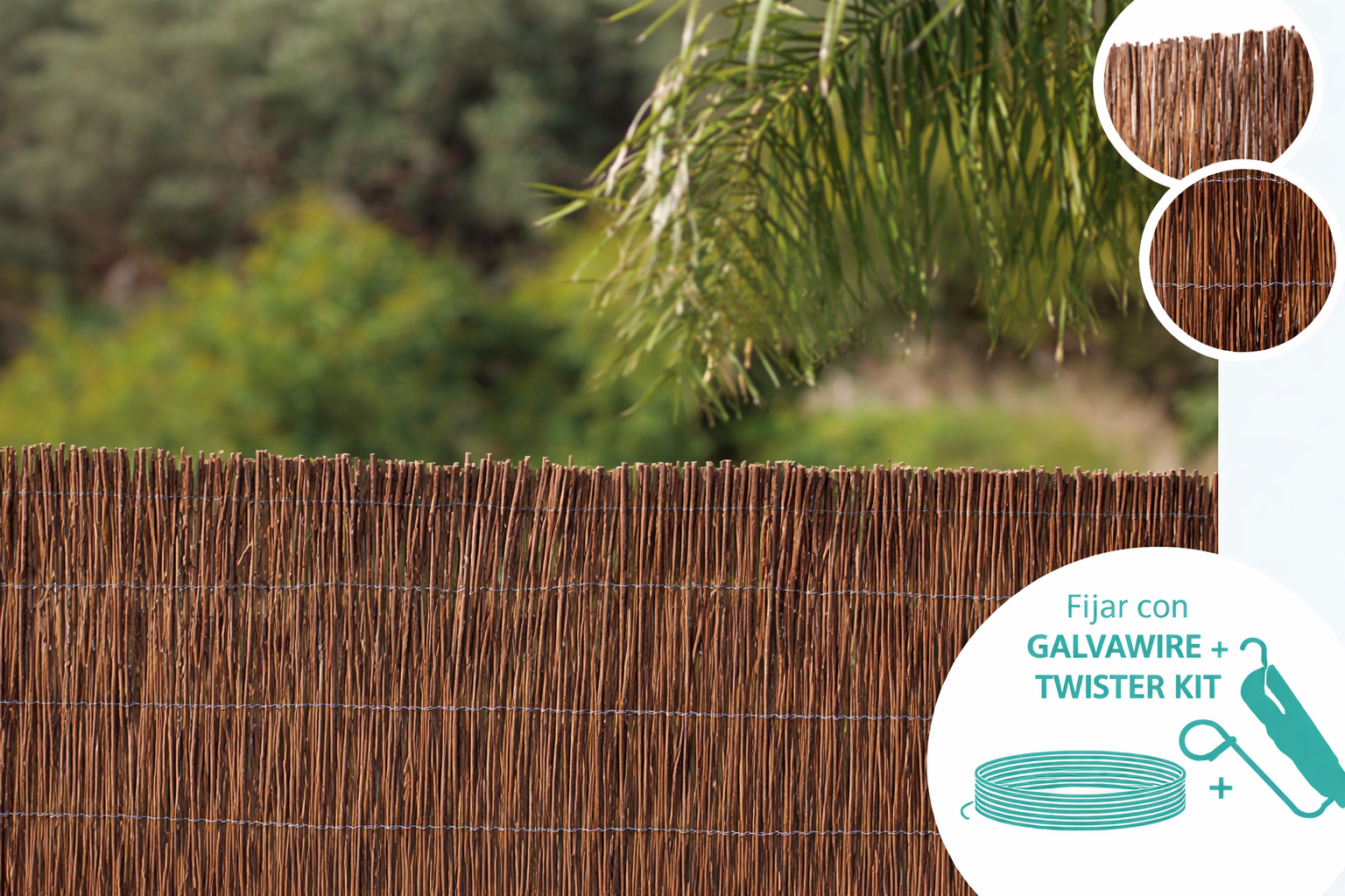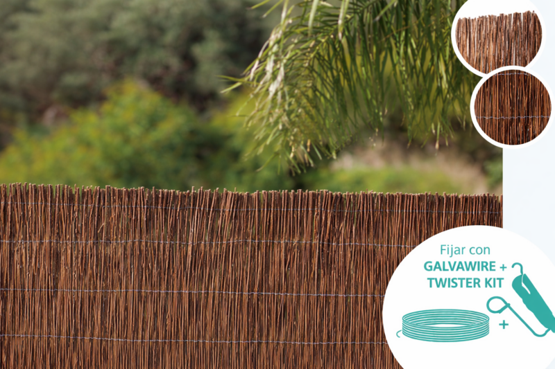 El Vimet Multi no es solo un sistema de ocultación, es un elemento decorativo con carácter propio. Al mezclar diferentes calibres de mimbre, se rompe la monotonía visual de los cerramientos estándar, aportando profundidad y un juego de sombras muy atractivo a tu jardín o terraza.