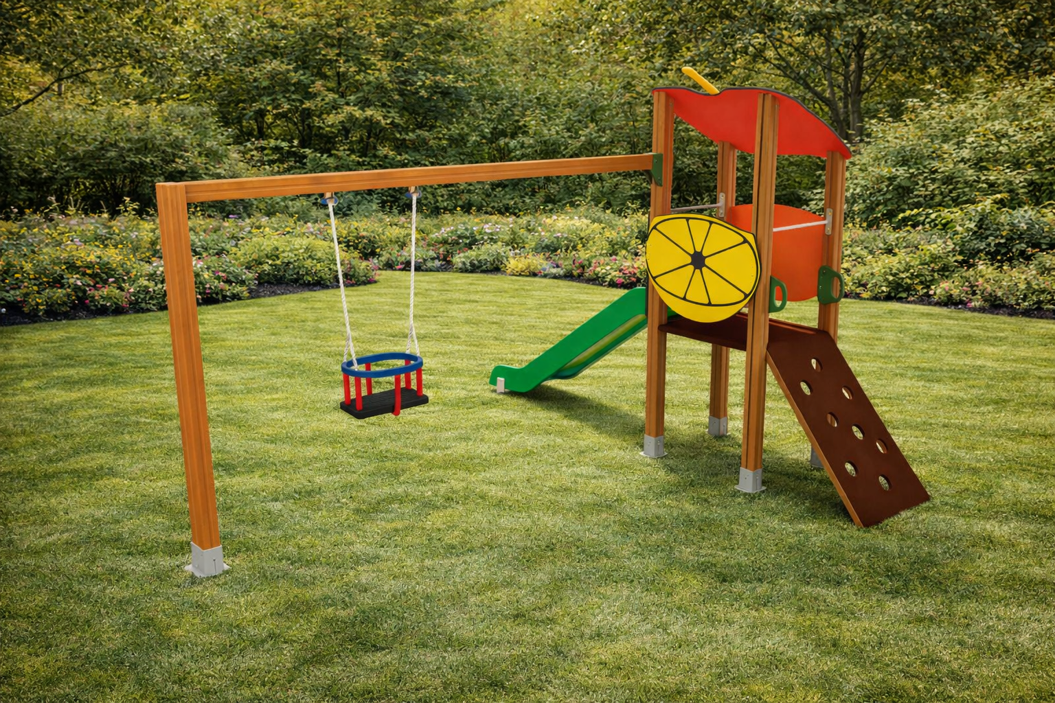 Parque Infantil Baby Apple (0–3 años) – Torre Temática, Tobogán y Columpio Nido con Certificación EN 1176