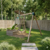 Módulo de Columpios Doble: Los asientos son ajustables en altura, lo que permite que el parque evolucione a medida que los niños crecen. Las cuerdas reforzadas garantizan un balanceo seguro y silencioso.
