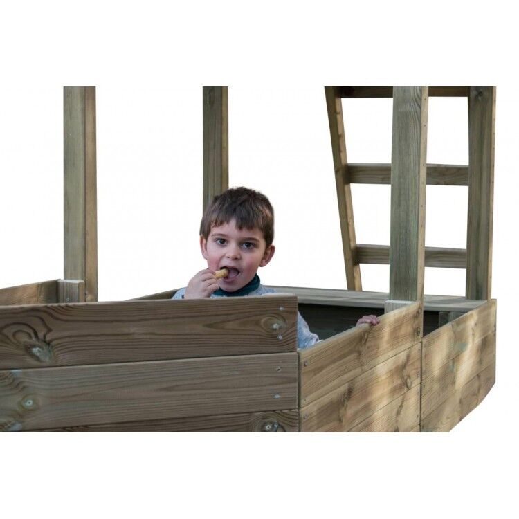 Juego Simbólico: La proa del barco incluye un timón giratorio, permitiendo que los niños desarrollen habilidades sociales y lenguaje mientras juegan a ser capitanes.