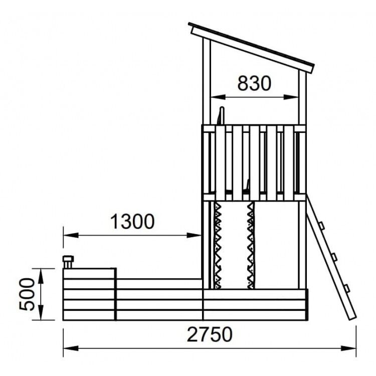 Bajo la plataforma principal, el MS-7 aprovecha la sombra natural para crear una zona de arenero. Este espacio es fundamental para el desarrollo sensorial y la motricidad fina, permitiendo que los niños construyan castillos o busquen tesoros enterrados mientras están protegidos del sol directo.