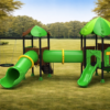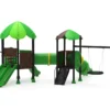 Polietileno LLDPE y HDPE: Los toboganes y paneles con formas naturales están fabricados mediante rotomoldeo. Este material no se astilla, es resistente a impactos y sus colores verdes y marrones permanecen vibrantes gracias a sus filtros UV.