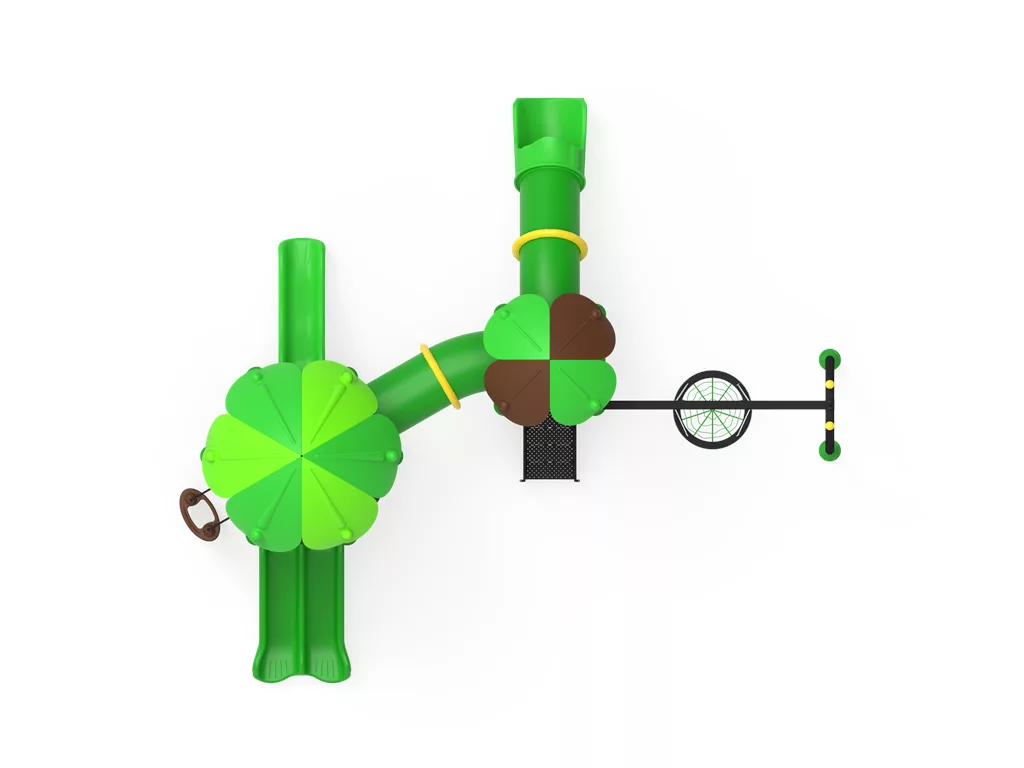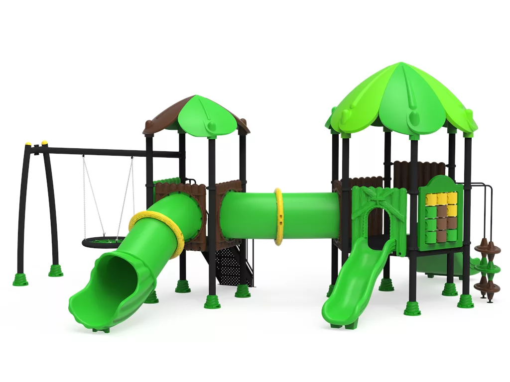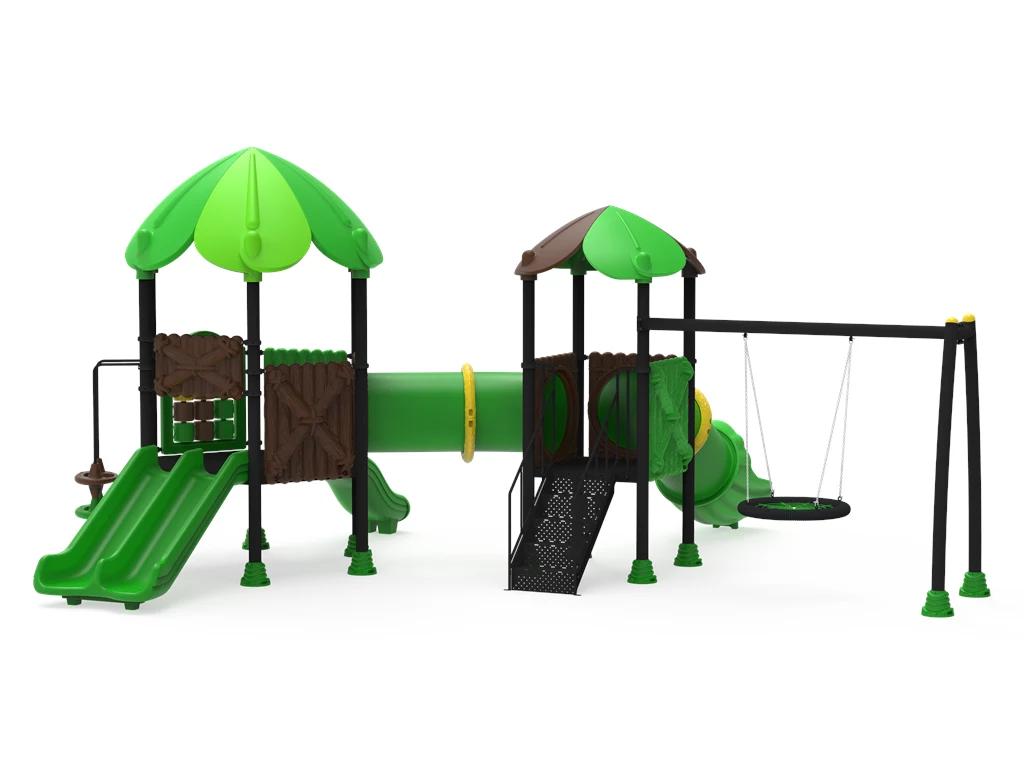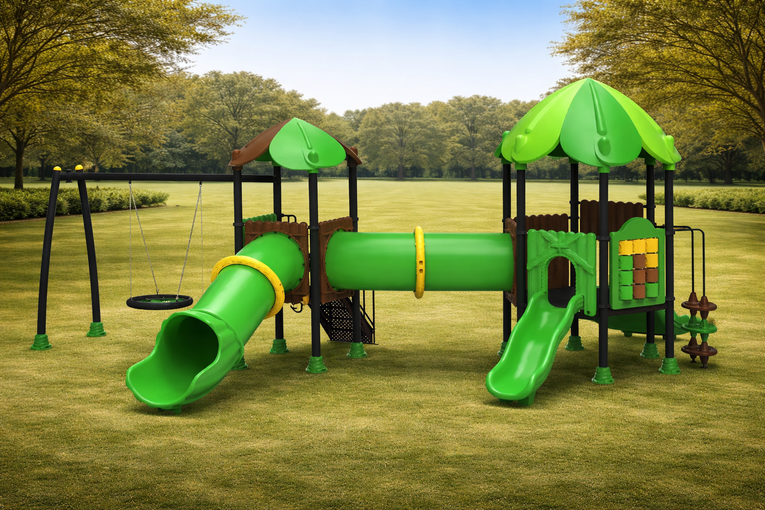 ¡La armonía perfecta entre aventura y relax! El Modelo PSI-21 es un complejo recreativo profesional de 9,5 metros, diseñado para mimetizarse con entornos naturales. Este parque destaca por su innovadora configuración que incluye un columpio tipo nido, ideal para el juego inclusivo y grupal, junto a una torre multiaventura con tres toboganes: uno doble para carreras, uno tubular cerrado y uno curvo. Equipado con túneles de conexión y múltiples niveles, el PSI-21 fomenta el equilibrio y la socialización en niños de 3 a 12 años. Fabricado con acero galvanizado y LLDPE rotomoldeado, garantiza una durabilidad extrema frente a la intemperie bajo los más altos estándares de seguridad europeos.