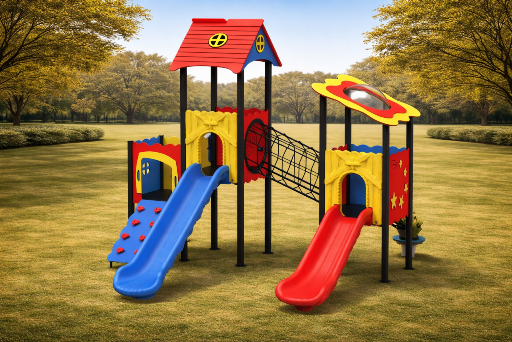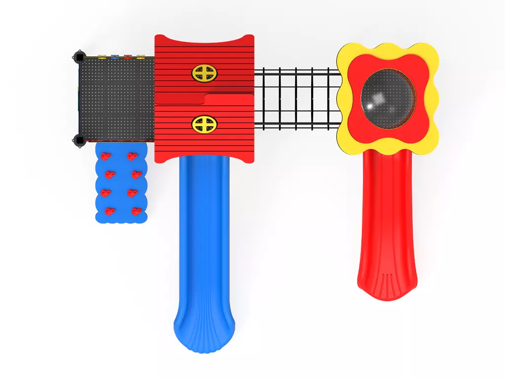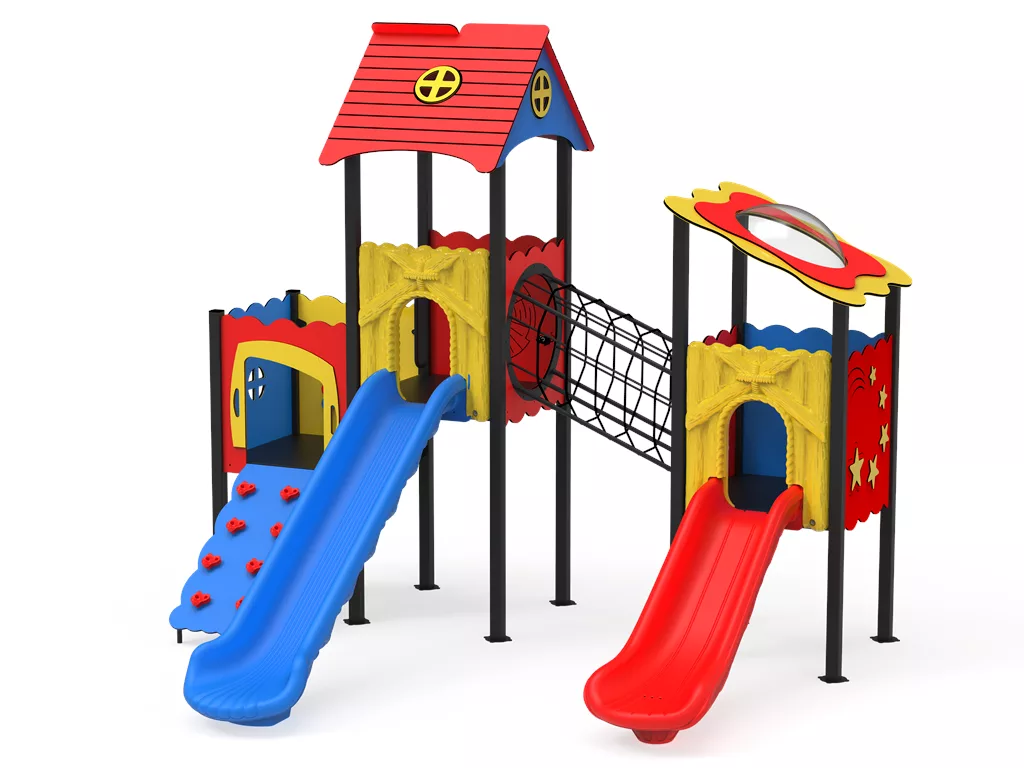 ¡Un hogar para la imaginación y la aventura! El Modelo PSIN-07 es un complejo recreativo profesional de 7,5 metros, diseñado para estimular el desarrollo motor y creativo en la primera infancia. Este parque destaca por su diseño tipo casita con colores vibrantes, que conecta dos torres principales mediante un emocionante puente colgante protegido. Con un doble tobogán (rojo y azul) para fomentar la sana competencia y una mini pared de escalar, el PSIN-07 ofrece un circuito completo de psicomotricidad. Fabricado con acero galvanizado y polietileno de alta densidad (HDPE), garantiza una resistencia total a la intemperie y rayos UV, siendo apto tanto para patios escolares como para áreas de juego interiores.