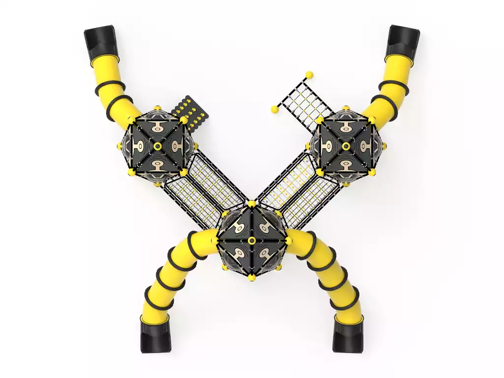 El Modelo PSIN-01 es un complejo recreativo modular de 9.5 metros que redefine el concepto de área de juegos con un diseño geométrico futurista.