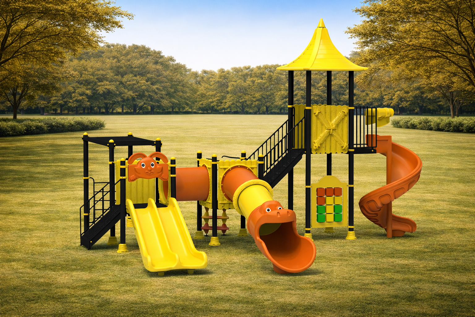 ¡Pura energía y movimiento en un solo circuito! El Modelo PSI-18 es un complejo recreativo profesional de 9,2 metros, diseñado para ofrecer una experiencia de juego multinivel de alta intensidad. Este parque destaca por su versatilidad de descenso, integrando un tobogán tubular cerrado tipo serpiente, un tobogán en espiral y un tobogán doble para carreras en pareja. Con un panel interactivo de figuras giratorias y túneles de conexión, el PSI-18 fomenta tanto la motricidad gruesa como la agilidad mental en niños de 3 a 12 años. Fabricado con acero galvanizado y LLDPE de alta resistencia, su vibrante diseño en naranja y amarillo garantiza una durabilidad excepcional frente a rayos UV y climas extremos.