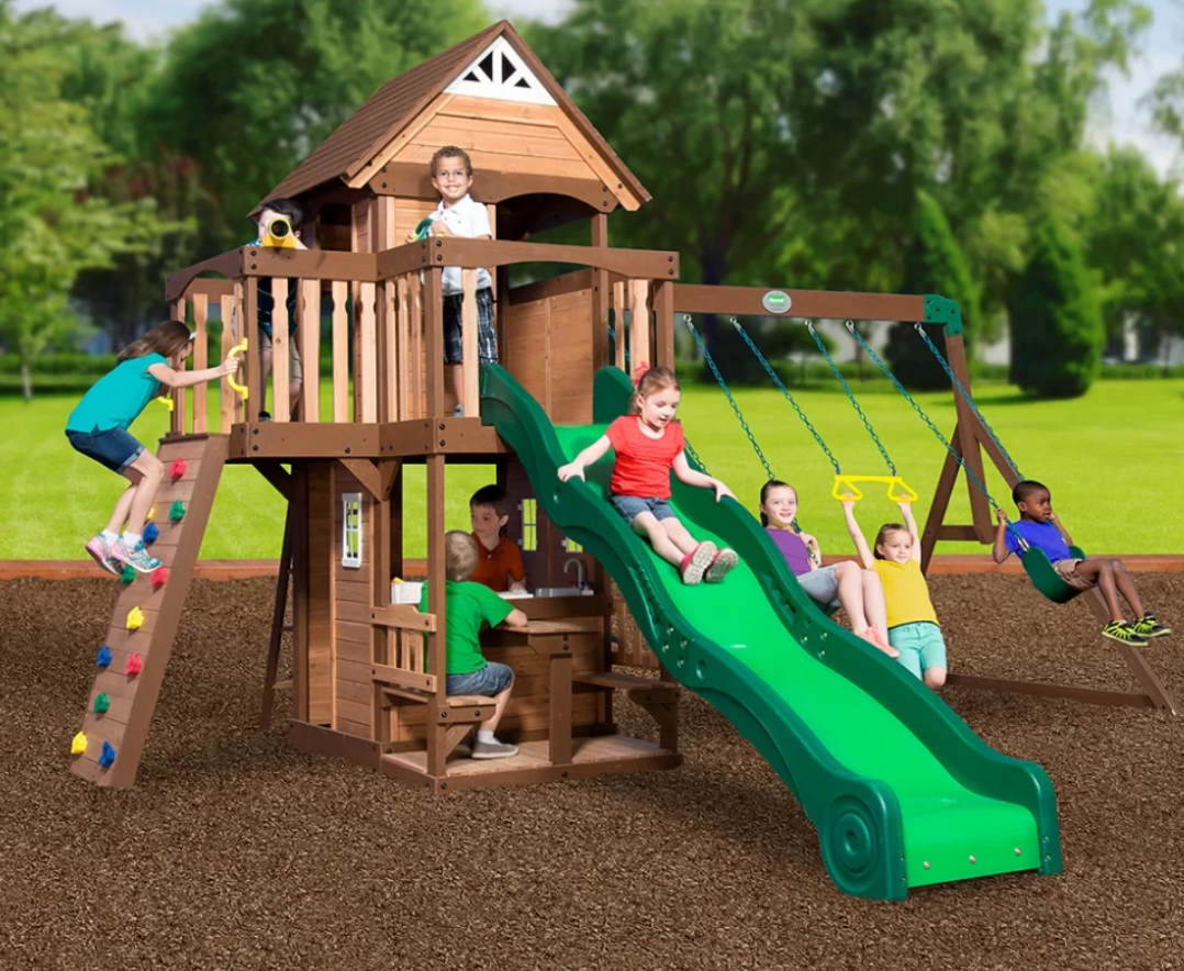 Parque Infantil Mount Triumph de Madera con Cocina de Juguete y Tobogán