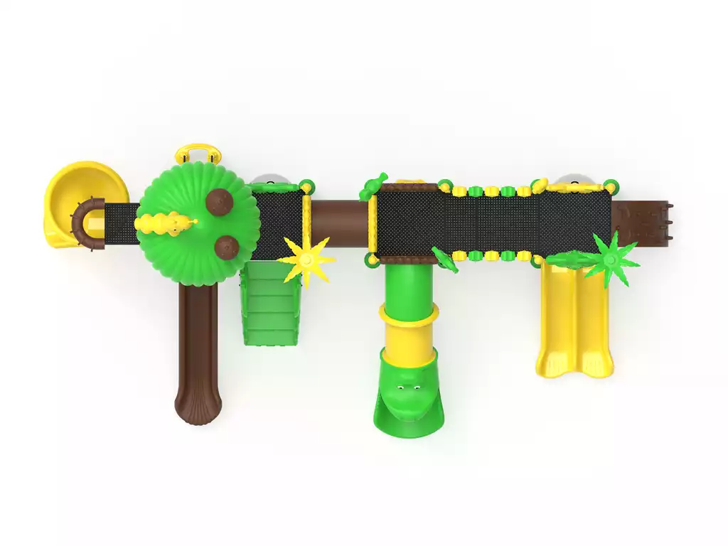 ¡La selva cobra vida en un circuito de 10.5 metros! El Modelo PSI-13 es un complejo recreativo de alto rendimiento diseñado para ofrecer una experiencia de exploración total. Este parque destaca por su impresionante oferta de descensos: un tobogán tubular cerrado, uno curvo, uno recto y un tobogán doble para carreras en pareja. Equipado con puentes elevados y túneles de gateo, el PSI-13 fomenta la motricidad gruesa y la socialización en niños de 3 a 12 años. Fabricado con acero galvanizado y polietileno de alta densidad (LLDPE), garantiza una resistencia extrema frente a rayos UV y uso intensivo, cumpliendo con los más altos estándares de seguridad europeos.