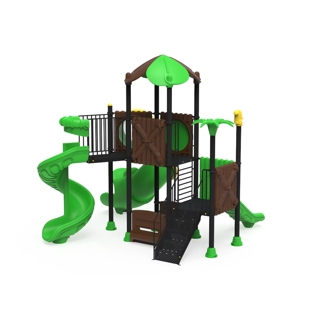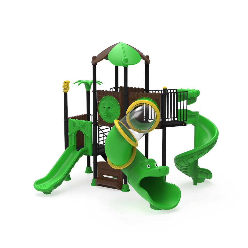 ¡Embárcate en una expedición al corazón de la jungla! El Modelo PSI-22 es un complejo recreativo profesional de 8,8 metros de largo, diseñado para ofrecer una inmersión total en la naturaleza. Este parque destaca por su imponente torre de 5 metros coronada con techos en forma de hojas, que despliega tres vías de aventura: un tobogán en espiral de alta adrenalina, un tobogán recto y un espectacular túnel cerrado con temática de cocodrilo. Con módulos interconectados por rampas y escaleras seguras, el PSI-22 fomenta la coordinación motriz y el juego simbólico en niños de 3 a 12 años. Fabricado con acero galvanizado y LLDPE rotomoldeado, garantiza una resistencia superior a la intemperie y rayos UV en parques públicos y colegios.