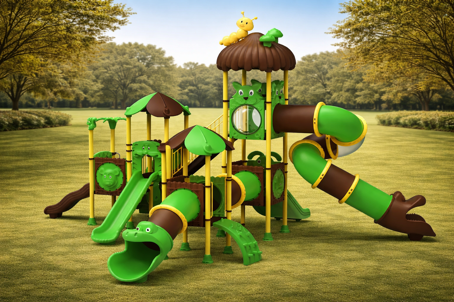 Mega Parque Temático Selva PSI-26 – 10.5m con Tobogán Tubular «Serpiente» y Certificación EN 1176
