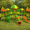 El Tobogán Doble: Ubicado en una de las plataformas principales, permite que dos niños se deslicen al mismo tiempo, fomentando la sana competencia y duplicando la capacidad de salida.