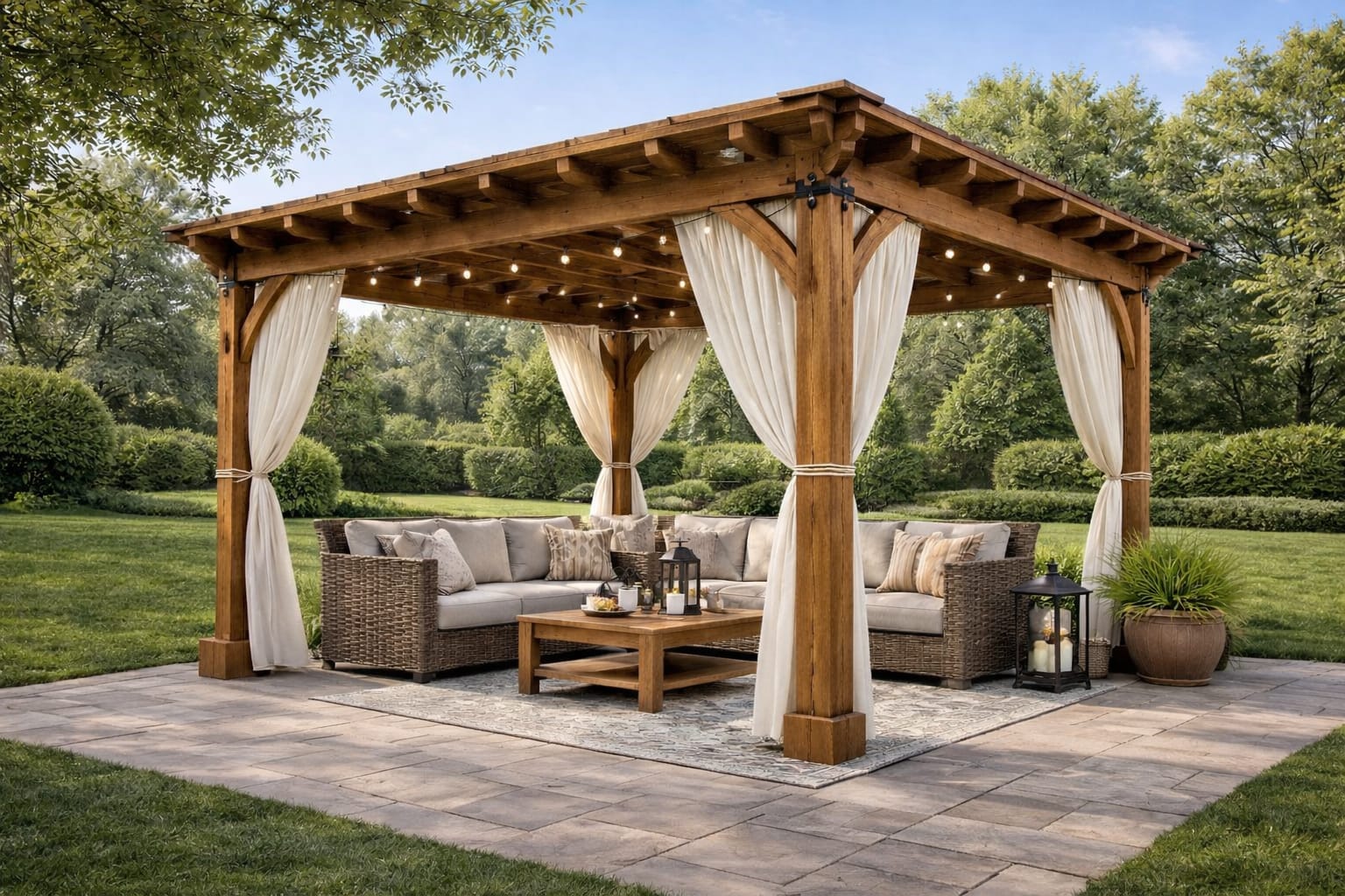 Nuestras pérgolas no son productos en serie; son piezas de arquitectura de exterior. Si buscas transformar tu terraza o jardín en un espacio de revista, nuestra Pérgola de Madera Premium es la base perfecta. Gracias a nuestra fabricación a medida, podemos convertir cualquier rincón en un salón exterior acogedor y funcional.