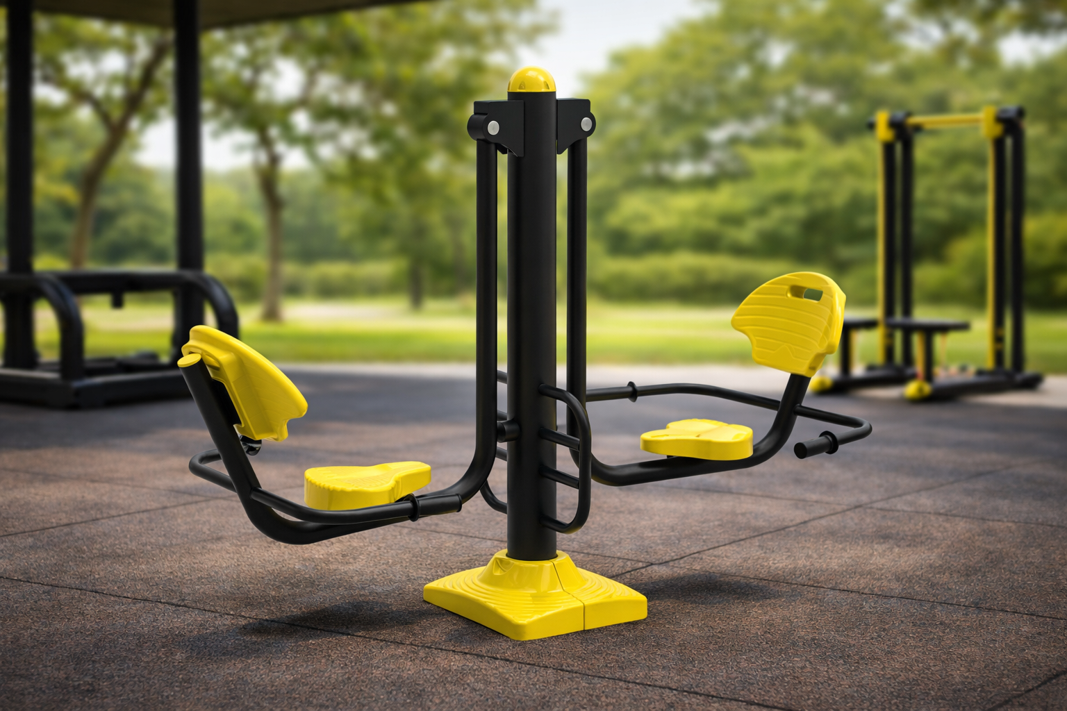 ¡Potencia tus piernas con la máxima comodidad al aire libre! La Prensa de Piernas PSF-02 es una estación de ejercicio dual diseñada para trabajar cuádriceps, glúteos y caderas mediante un movimiento de empuje suave y controlado. Fabricada en acero galvanizado reforzado, permite que dos usuarios se ejerciten simultáneamente sentados, favoreciendo la interacción social y el bienestar comunitario. Con un diseño ergonómico en negro y amarillo de alta visibilidad, incluye asientos y pedales antideslizantes para un entrenamiento seguro en cualquier condición climática. Es la solución ideal para parques públicos, urbanizaciones, hoteles y centros de rehabilitación que buscan equipamiento duradero y de bajo impacto.