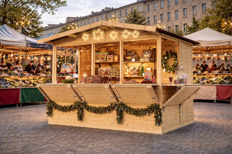 El quiosco Market Pro XL (TBL-11) es la solución definitiva para puntos de información turística, bares de exterior, o puestos de venta en mercados navideños y ferias artesanales. Su diseño modular permite una atención fluida a múltiples clientes de forma simultánea.