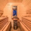 Accesorios de Lujo: Incluye 2 respaldos ergonómicos, 2 fundas para bancos, reposacabezas y un sistema de iluminación especial para sauna.