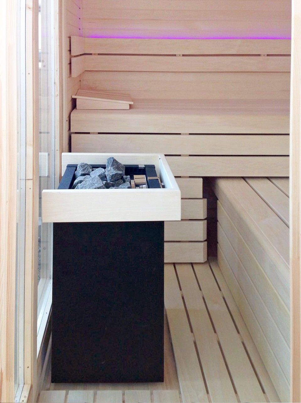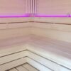 Madera Térmica Especial: El mobiliario interior está fabricado en madera blanda libre de nudos, lo que evita acumulaciones de resina y garantiza que los bancos se mantengan frescos al contacto.