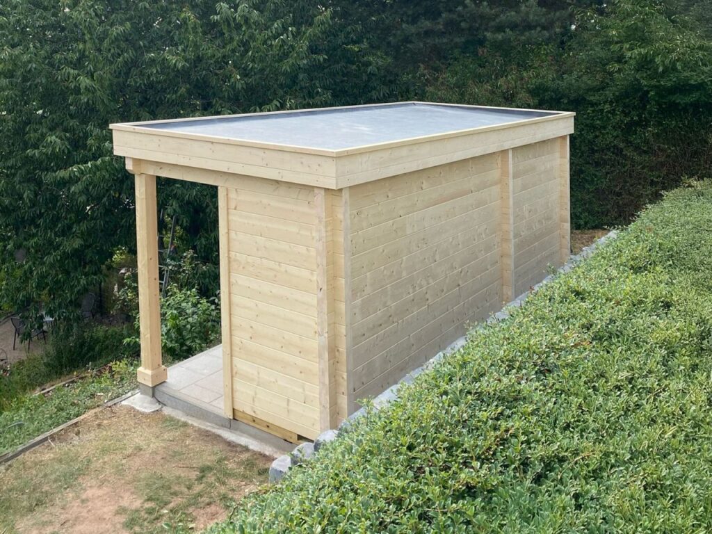 Lleva la tradición finlandesa a tu jardín con la Sauna FUNNY-5823. Con una imponente estructura de 5,80 metros, este modelo combina una cabina de sauna profesional con una zona de antesala aislada. Fabricada en abeto nórdico macizo (con espesores personalizables de hasta 140 mm), garantiza una retención de calor insuperable y una estabilidad estructural garantizada por varillas roscadas de acero. Su diseño moderno de techo plano y grandes frentes de vidrio aislante la convierten en el refugio de lujo definitivo para tu hogar.