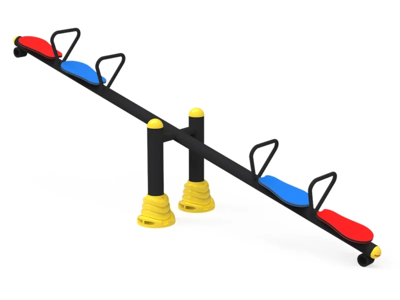 El modelo PSA-03 ha sido proyectado para maximizar la capacidad operativa de los parques infantiles modernos. Al permitir que cuatro niños interactúen a la vez, este balancín no solo ahorra espacio, sino que se convierte en una herramienta pedagógica donde el equilibrio depende de la cooperación y sincronización del grupo. Es la inversión estratégica para ayuntamientos y centros educativos que requieren equipos de alto tráfico con estándares de seguridad europeos.
