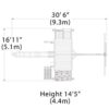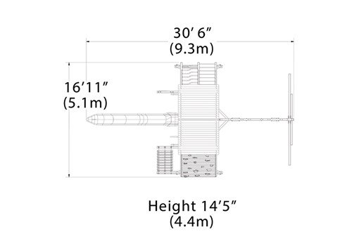 El Titan Peak Jumbo 1 es la estructura más imponente y resistente de la serie Peak. Elevado sobre una plataforma de 2,1 metros de altura con 4,1 m² de espacio libre, este parque está diseñado para que niños y adultos compartan la diversión. Destaca por su tobogán Rocket de 4,2 metros (14 pies), su viga de columpios reforzada con acero y accesorios de alto rendimiento como la barra de bombero y la escalera de cuerda. Un diseño de ingeniería superior con elegante techo de lona caoba y garantía limitada de por vida.