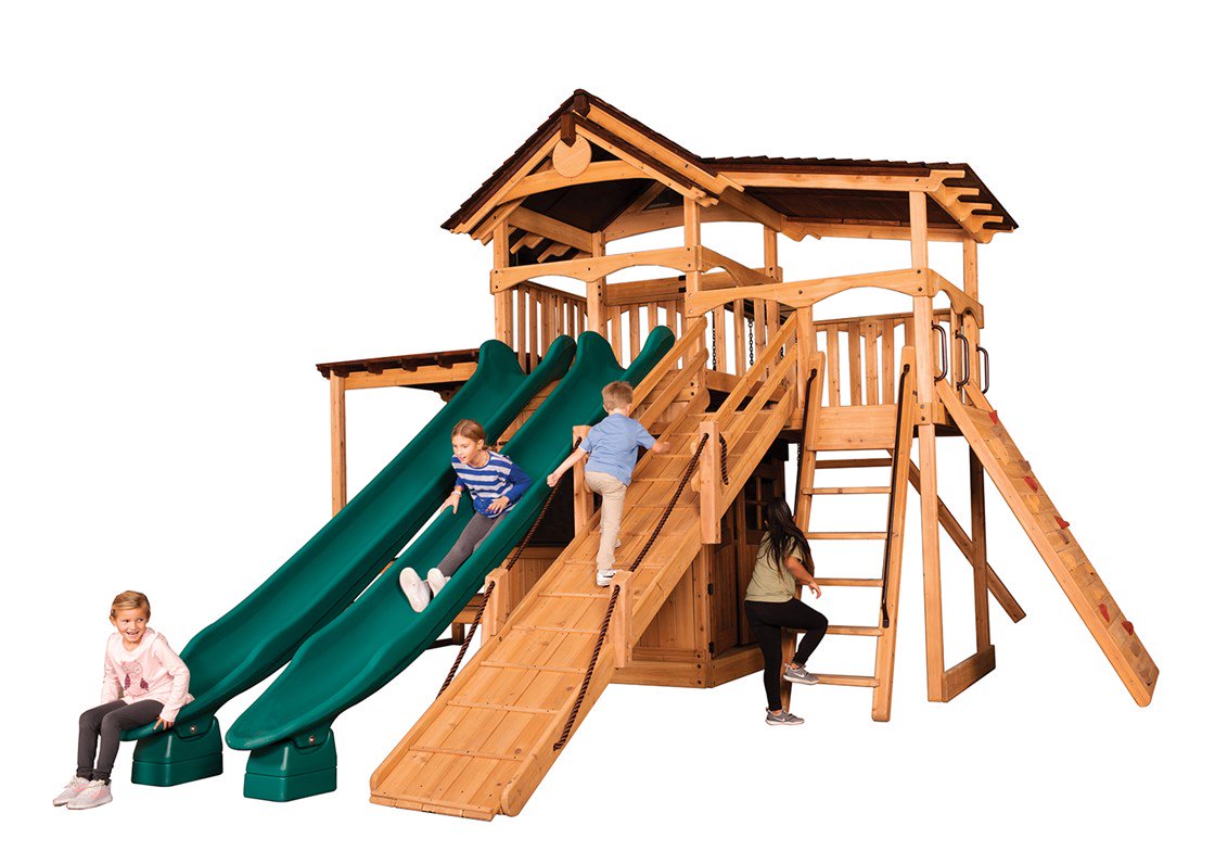 Titan Treehouse XL 4 | Parque de Madera con Doble Tobogán 14ft