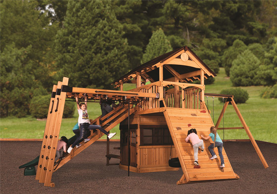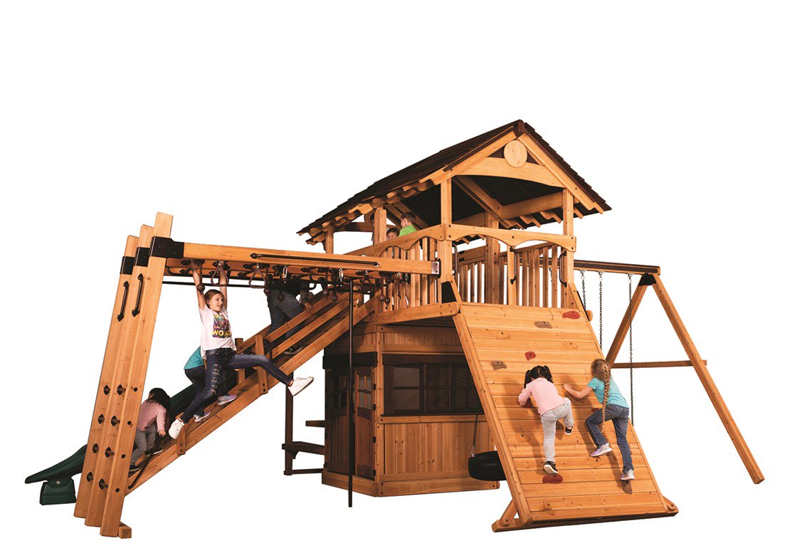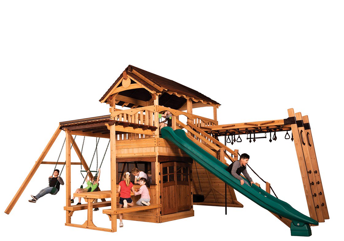 Como parte de la prestigiosa Treehouse Series, el Titan XL 9 está fabricado con maderas de alta densidad tratadas para durar décadas. Su robustez es tal que incluso los padres pueden participar en el juego. La garantía limitada de por vida asegura que cada viga, herraje y accesorio mantenga su integridad estructural año tras año.