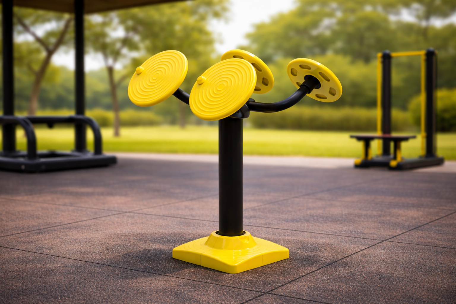 ¡Mantén tus articulaciones jóvenes y activas al aire libre! El Volante de Hombros PSF-06 es una estación de ejercicio dual diseñada para mejorar la movilidad de hombros, codos y muñecas mediante movimientos circulares fluidos. Fabricado en acero galvanizado de alta resistencia, este equipo permite que dos personas se ejerciten simultáneamente, cada una con un juego de doble volante para trabajar ambos brazos de forma coordinada. Con su diseño ergonómico en negro y amarillo, es la herramienta ideal para prevenir la rigidez articular y mejorar la circulación en la parte superior del cuerpo. Resistente a la intemperie y de mantenimiento mínimo, es el complemento perfecto para cualquier gimnasio urbano o parque de mayores.